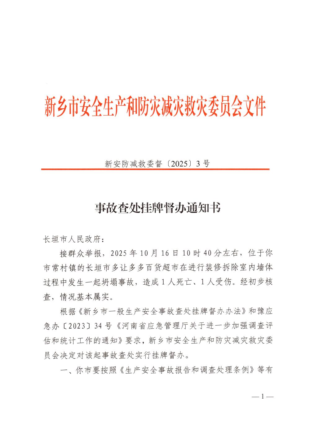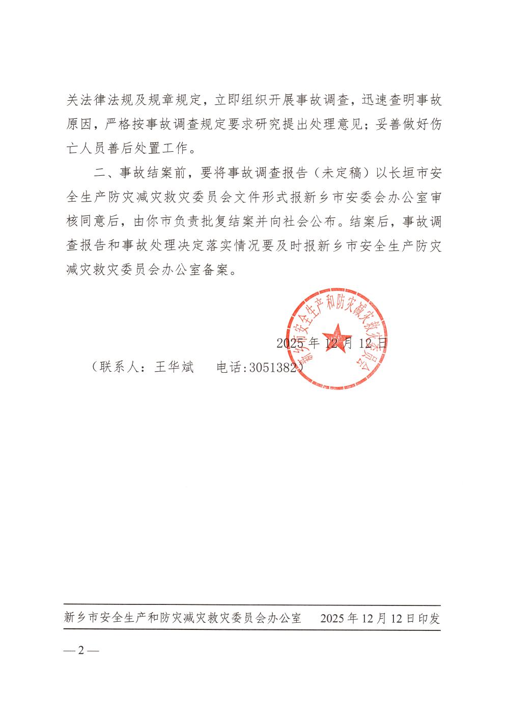 事故查处挂牌督办通知书 新安防减救委督〔2025〕3 号