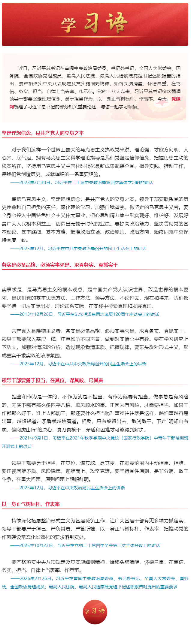 学习语|在笃信、务实、担当、自律上当表率、作示范