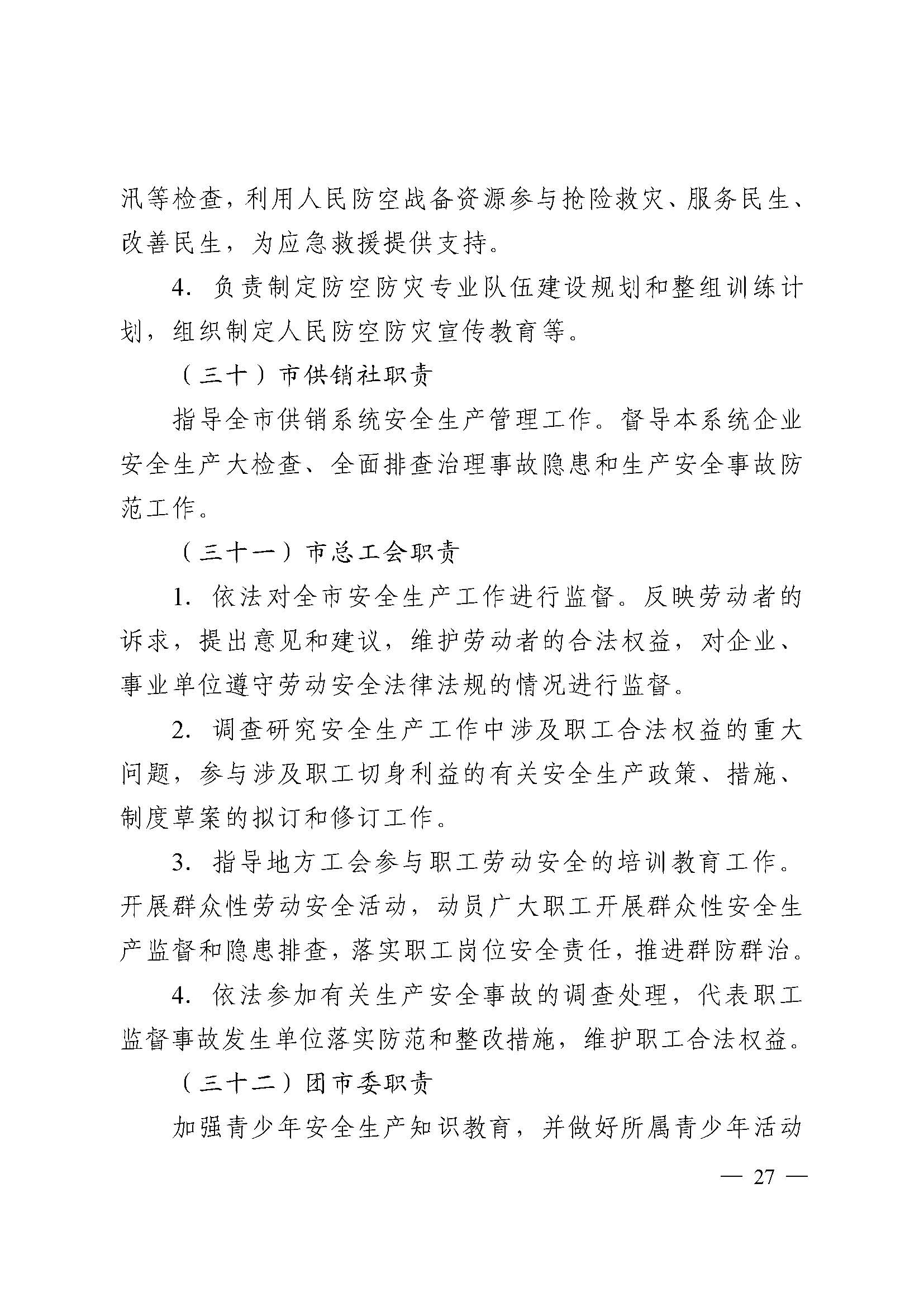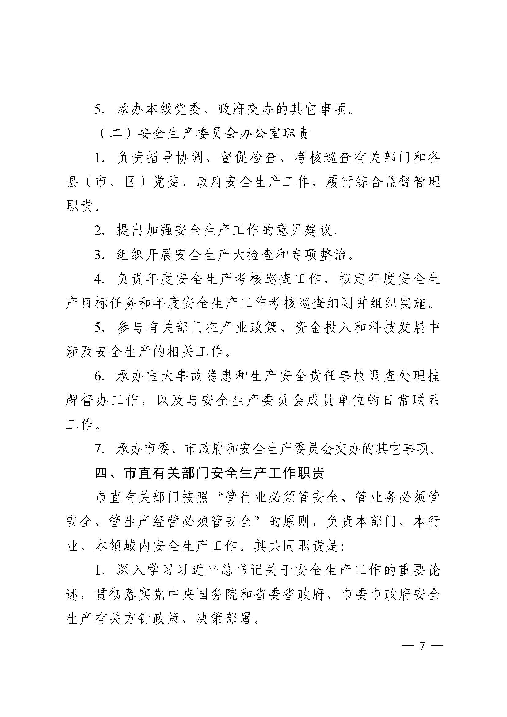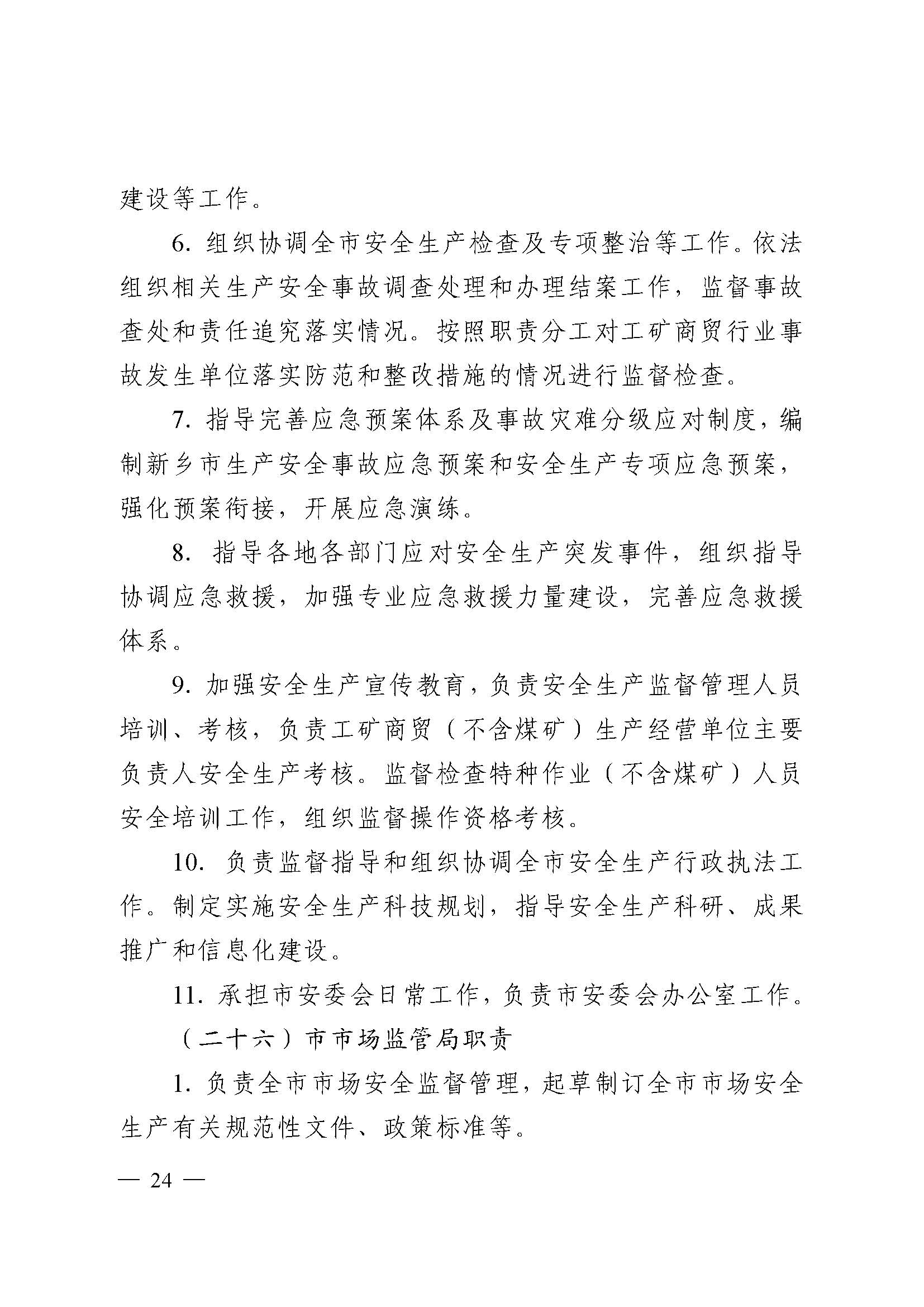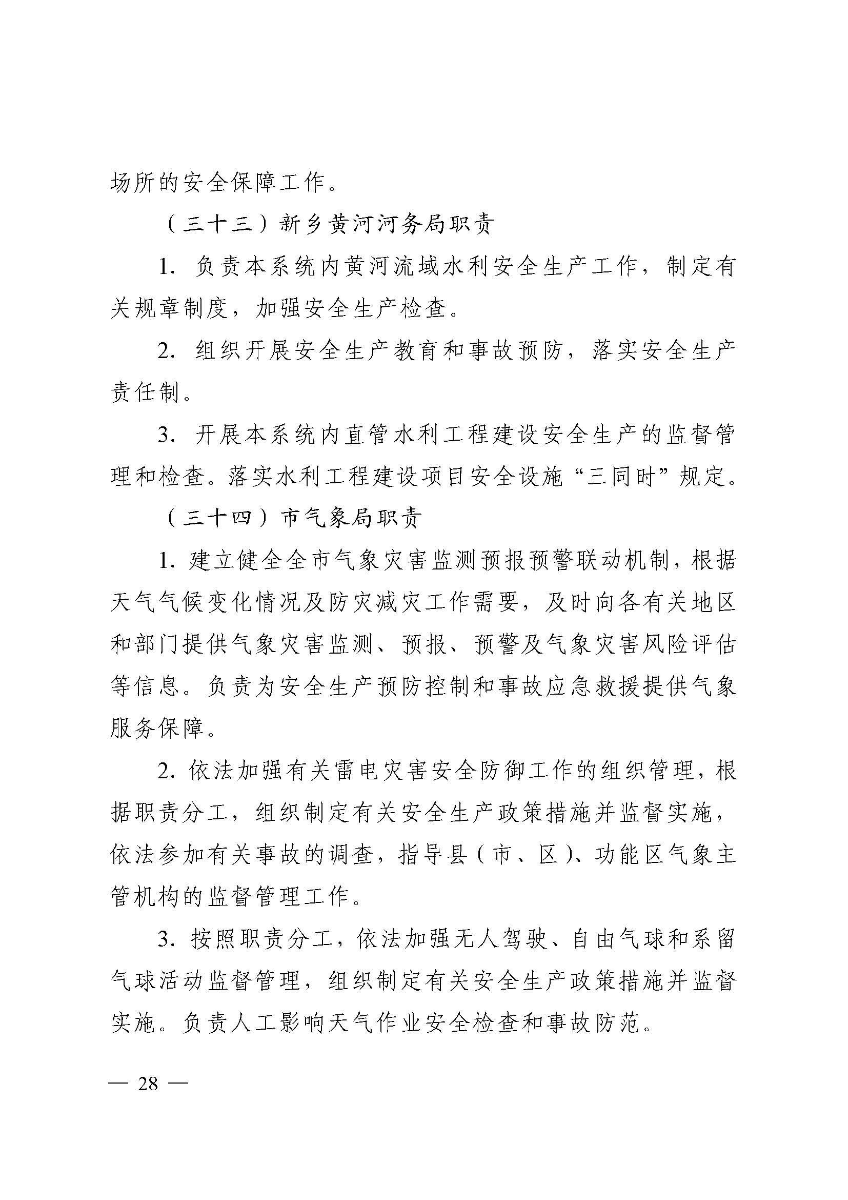 中共新乡市委办公室 新乡市人民政府办公室 关于印发《新乡市党委政府及有关部门安全生产工作职责》《新乡市党政领导干部安全生产工作职责》的通知